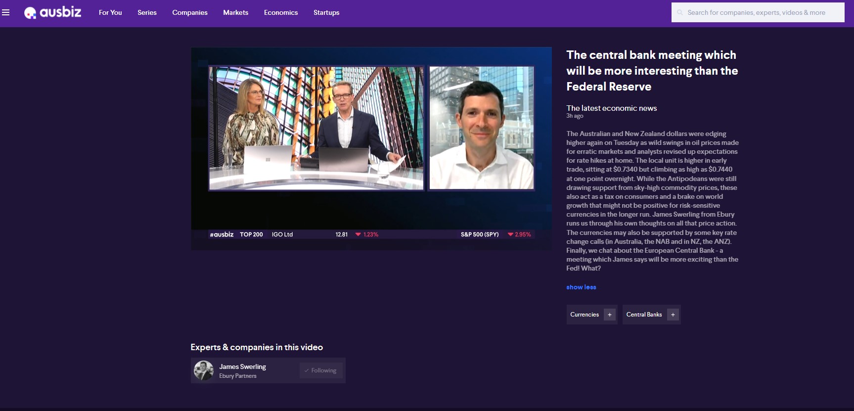 The local unit is higher in early trade, sitting at $0.7340 but climbing as high as $0.7440 at one point overnight. While the Antipodeans were still drawing support from sky-high commodity prices, these also act as a tax on consumers and a brake on world growth that might not be positive for risk-sensitive currencies in the longer run. James Swerling from Ebury runs us through his own thoughts on all that price action. The currencies may also be supported by some key rate change calls (in Australia, the NAB and in NZ, the ANZ). Finally, we chat about the European Central Bank – a meeting which James says will be more exciting than the Fed! What?